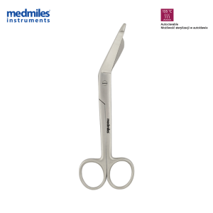 Nożyczki do bandaży Lister, przeznaczone do bezpiecznego usuwania opatrunków. Ostrza pod kątem podnoszą bandaże z dala od skóry, zapobiegając skaleczeniom.
