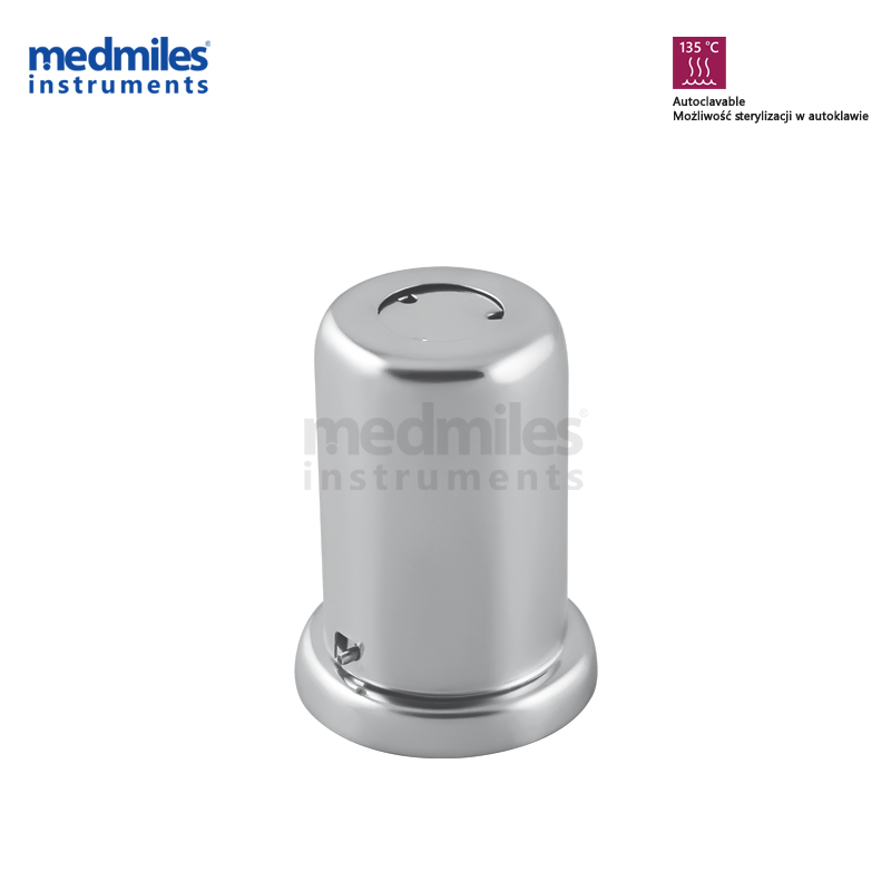 Pojemnik ze stali nierdzewnej o wymiarach 75x50mm do bezpiecznego przechowywania waty i małych materiałów opatrunkowych.