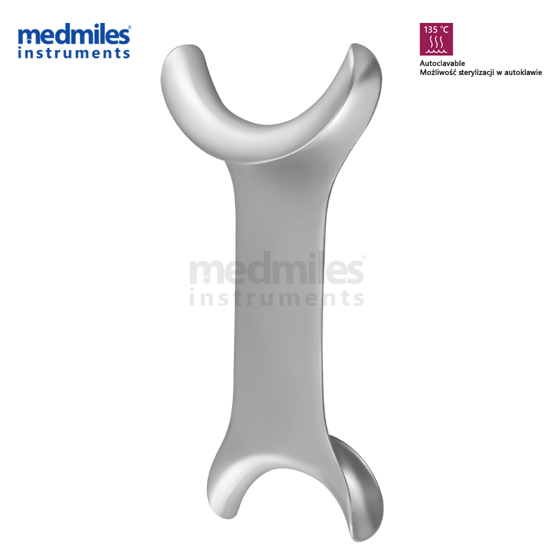 • Dwustronny kształt pozwala na obustronne odciąganie policzków, poprawiając dostęp i widoczność.